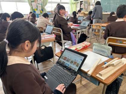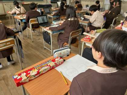 図工「たのしいなかま」は、木工で整理整頓箱を作ります。アイデアスケッチに取り組んでいます。