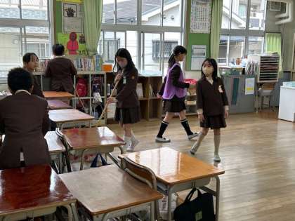 協力して時間内に掃除を済ませ、振り返りの時間には6年生に感謝の気持ちを伝えました。
