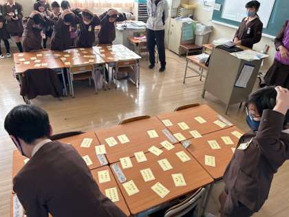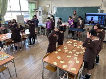 高学年が1回戦でお手本を見せて、2回戦は中学年が対戦します。