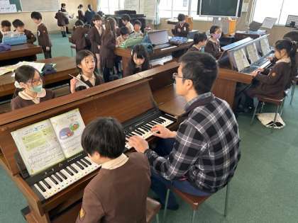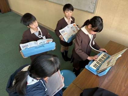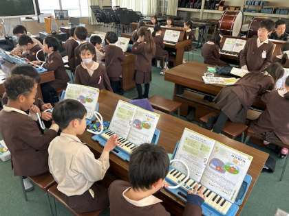 音楽「こぐまの2月」は鍵盤ハーモニカやエレクトーンで指遣いの練習をしています。