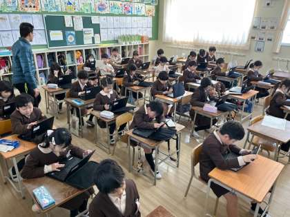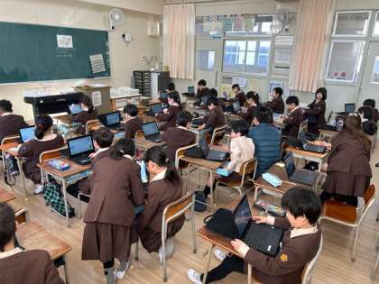 タブレットを使ってアンケートに回答しています。なりたい自分について考えました。
