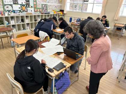 教育センターから講師先生がお越しになり、年間の指導計画について指導をいただきました。それを元に教育課程について低・中・高に分かれて検討をしています。