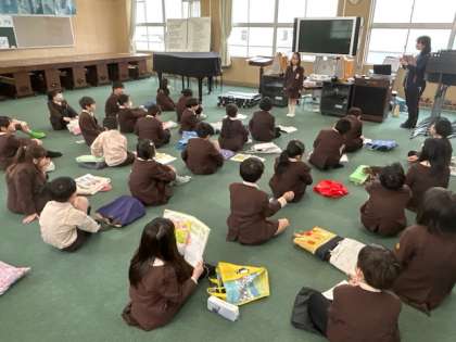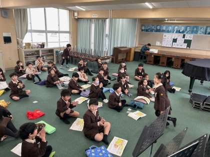 音楽「春が来た」の独唱をしています。高音に気をつけて伸びやかに歌う事ができました。