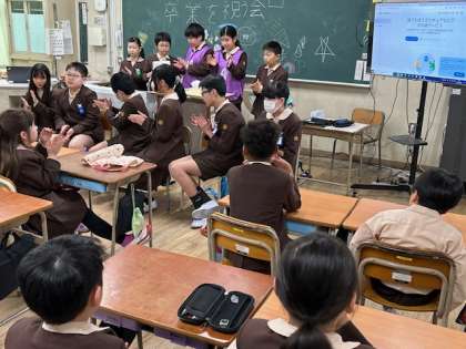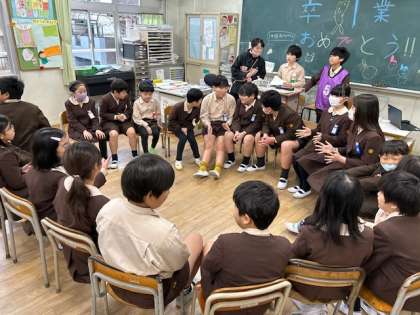 たてわり班で、お世話になった6年生に感謝の気持ちを込めて、贈る言葉を伝えたり、ゲームをしたりしました。