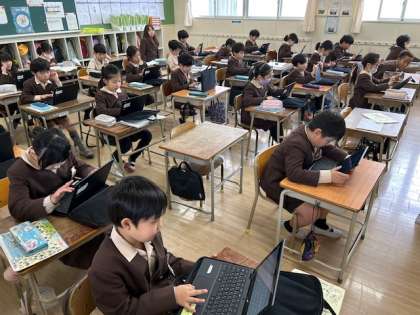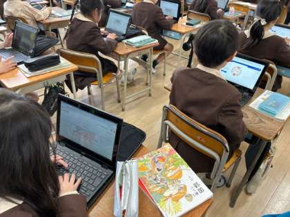5時間目はタブレットでタイピングの練習や計算・漢字の学習を自分のペースで進めています。