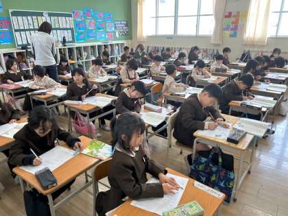 国語「1年間の思い出ブック」では、季節ごとに行った出来事を思い出してプリントにまとめています。