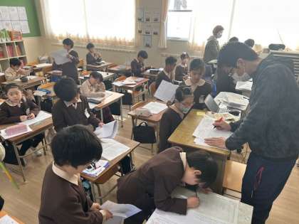算数「2年生の復習」では、1年間に学習した内容を振り返って定着を図ります。