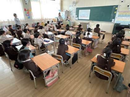 生活科「もうすぐ2年生」は入学式に流すVTRを見ながら、この1年間を振り返っています。