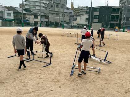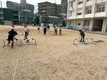 体育「ハードル走」は自分たちでコースを作り、練習していきます。