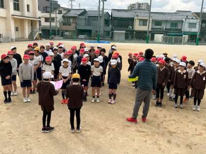 1年間お世話になりました。これからもよろしくお願いします。5年生に喜んでもらえるように「王様じんや」など新しいゲームをしました。