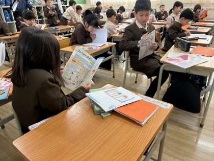1年間に学習した冊子や作品の整理整頓をしています。配られた物を見て懐かしい気持ちになりました。
