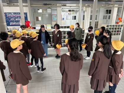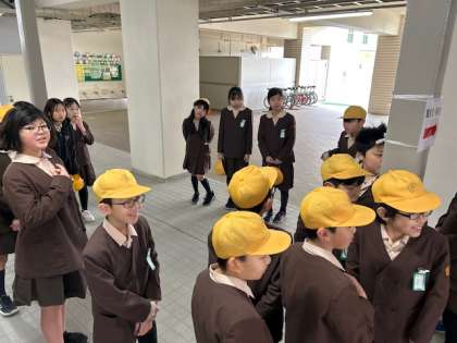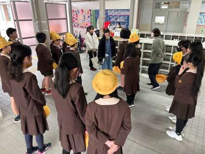 今日から最高学年となる5年生が挨拶ボランティアの振り返りをしている時に卒業生が来てくれました。