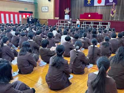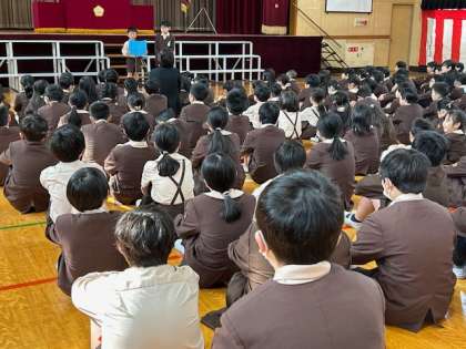 1年生と5年生の代表が1年間の頑張りを発表しました。