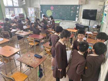 「5年生のお別れ会」は、自分たちで司会・進行をしながらゲームを楽しんでいます。