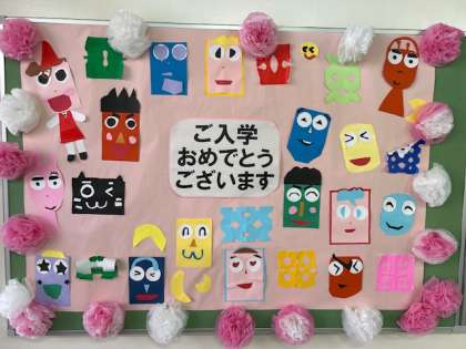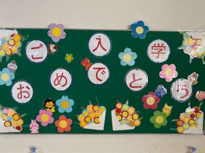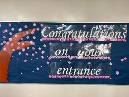 廊下や階段の掲示は新入生の入学をお祝いしながら心を込めて作りました。