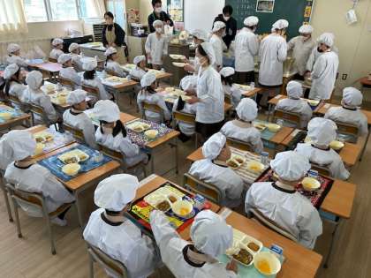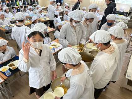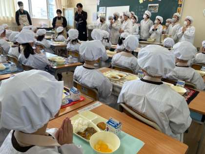 6年生に配膳をしてもらって、美味しい給食が始まります。好き嫌いせずに残さず食べるようにしてほしいです。