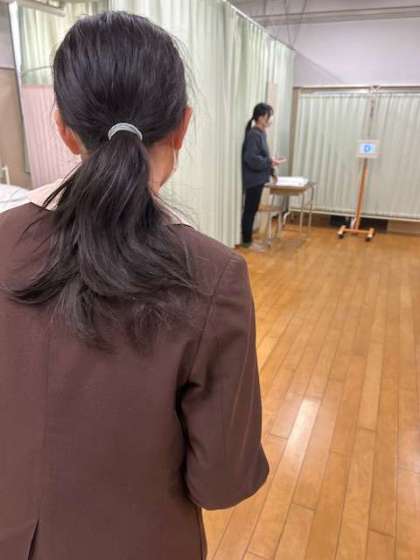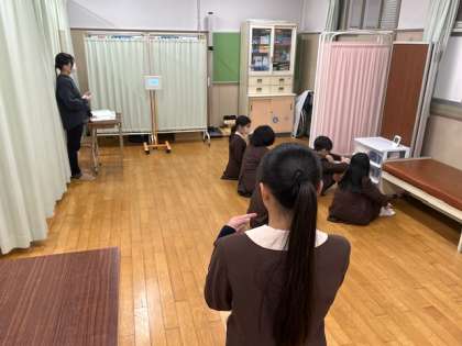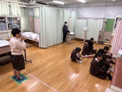 視力検査をしています。一般的に学年が上がるにつれて視力が低下していると言われています。