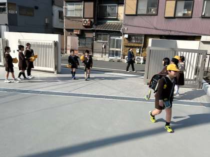 今日は、5・6年生が「すくすくテスト」があるので、4年生が挨拶ボランティアをしています。