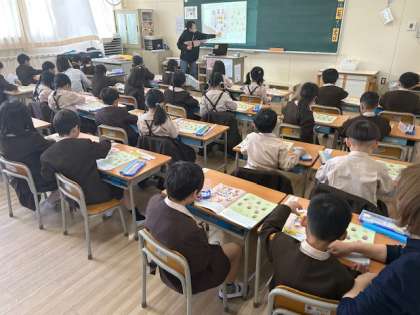 算数「いくつかな」は、ブロックを置いて1対1対応ができるか数を数えて確かめています。
