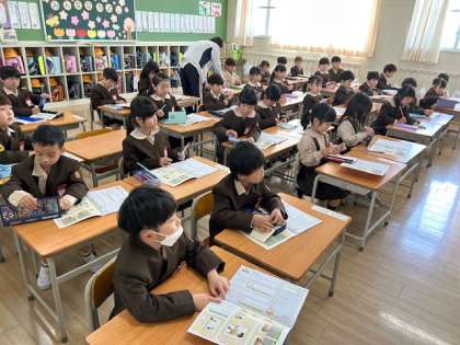 「ひらがな・すうじ」のドリルが始まりました。「はなまるくん」を使って正しく鉛筆を持って書いています。