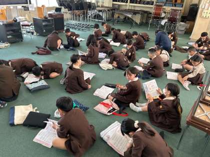 音楽「いいことありそう」は同じ高さの音符を見つけることでメロディの高低を意識しています。