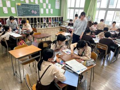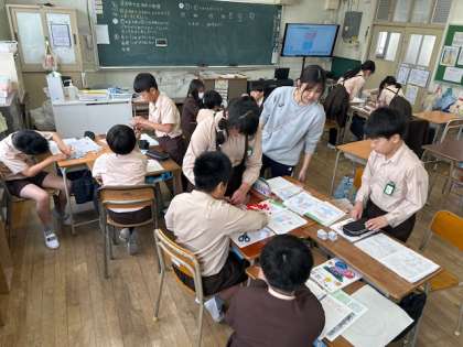 算数「直方体や立方体の体積」は1?のいくつ分あるか実際に班で確かめています。
