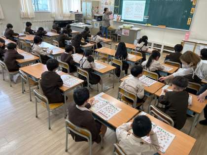 ?算数「おなじ かずの なかまを さがそう」で教科書をよく見て「6」と「7」の学習をしました。