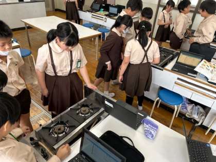 家庭科「クッキングはじめの一歩」では、ガスコンロの使い方を学びました。