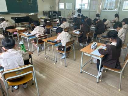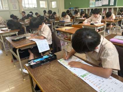 国語「漢字学習」は「何」と「考」を習いました。空書きをした後、ドリルに練習しています。
