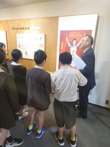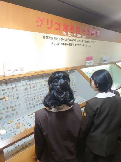 グリコ創業者江崎さんについて、グリコのおまちゃの歴史、グリコのお菓子、グリコマークを作るまでなど詳しく説明していただきました。