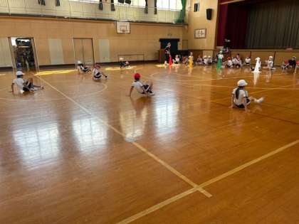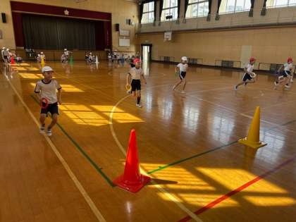 体育「体づくり」では、体幹をつくる運動や瞬発力を高める運動を工夫しています。