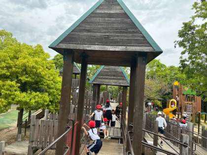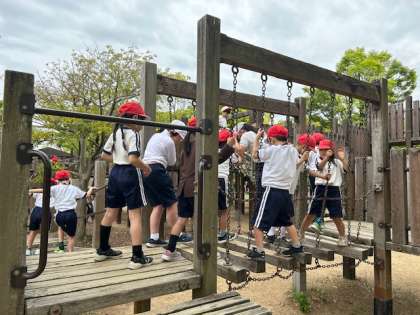 アスレチックは、バランスをとったり体重を支えたり、かなりの運動量をこなしています。