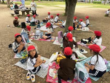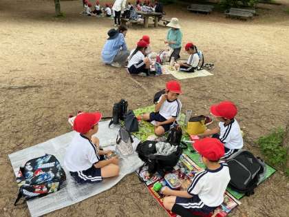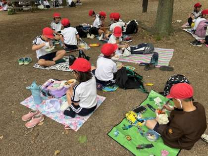 自然探しの後は、お弁当の時間です。お腹がペコペコペコなので残さず食べます。
