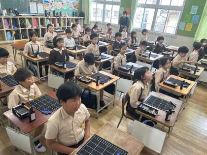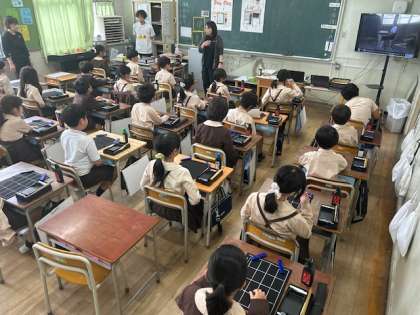 国語「習字」は初めてなので、学校で習字をする時のきまりを確かめました。正しい姿勢で集中して丁寧に書いていきます。