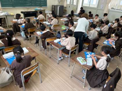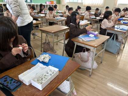図工「ねん土でつくろう」では、いろんな食べ物の入ったオリジナル弁当を作っています。