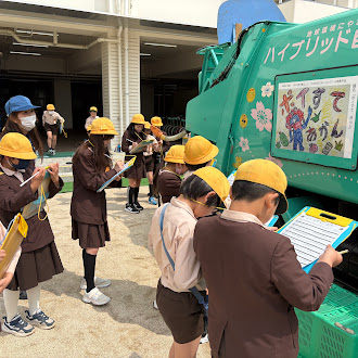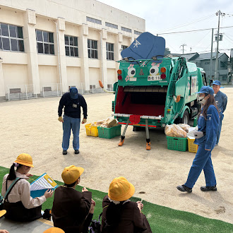 ゴミ収集の様子や、パッカー車の中の様子など様々なことを学びました。