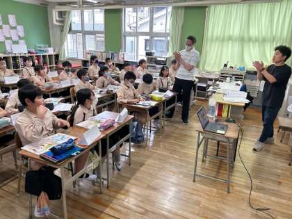 > ?英語「What food do you like?」では、名刺を作って自己紹介をしていきます。