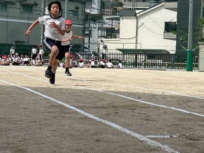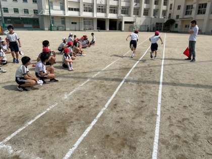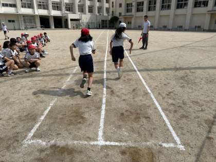 校舎改修完了後、初めて校内でのスポーツテストです。緊張しながらも友達の声援に力が出ました。