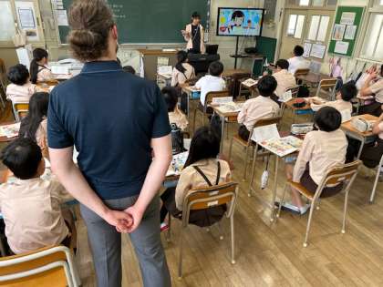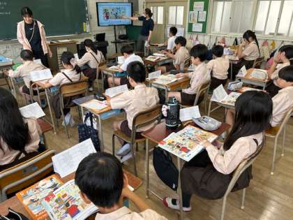 英語「When is your birthday?」ではテキストを使って聴き取りを進めています。