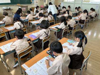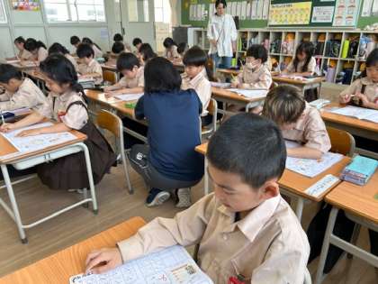 国語「ひらがな」は「ね」を習いました。形を取るのは難しいけれど丁寧に書いて覚えます。