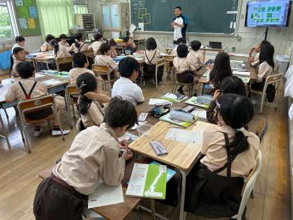 理科「モンシロチョウのよう虫」をルーペで詳しく観察していきます。