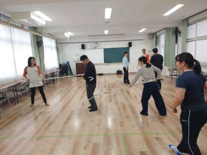 放課後、警察の方に来ていただいて、教職員対応の不審者対応研修を行いました。