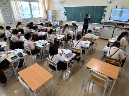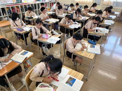 今日は、図書館司書の方に読み聞かせをしていただきました。6年生でも惹き込まれました。
