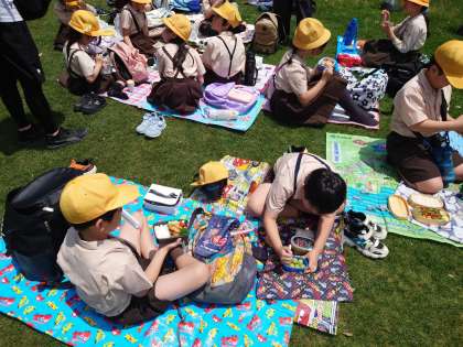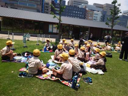 さっきまでハルカスから見えていた「てんしば」でお弁当を食べます。