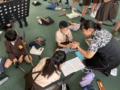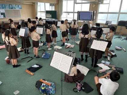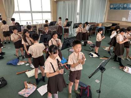 音楽「ハッピーバースディトゥユー」をリコーダーで練習しています。