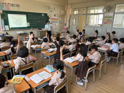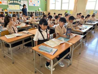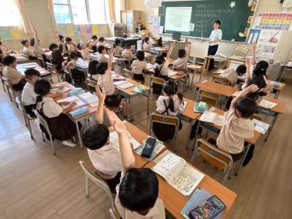 算数「おはなしづくり」では、たし算になるように問題を考えました。