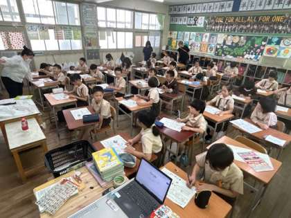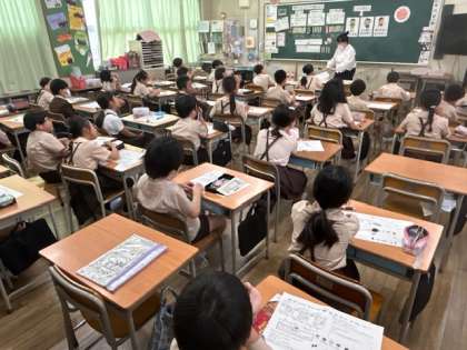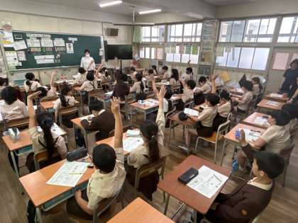 栄養指導「おやつについて考えよう」では、栄養教諭の先生に教えていただきました。思った以上にに砂糖が沢山入っているのを知ってビックリしました。