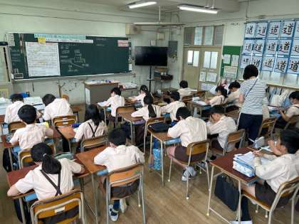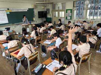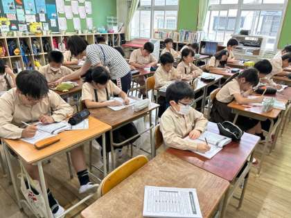 総合的読解力の授業では、大阪市独自の教材を使って「安全な大阪 町づくり研究所」について学習しています。