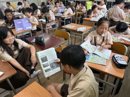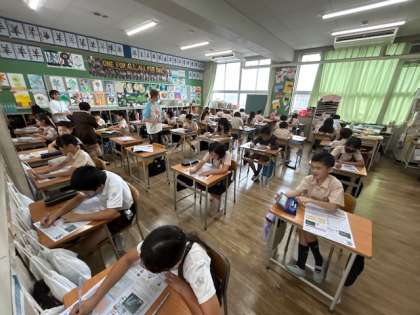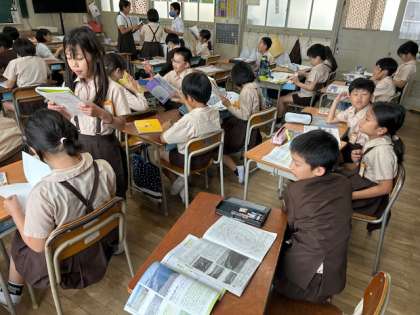 社会「命とくらしをささえる水」は、単元テストの前に復習をしたり友達と問題を出し合ったりしました。テストが始まると力を出し切るよう真剣に取り組みます。