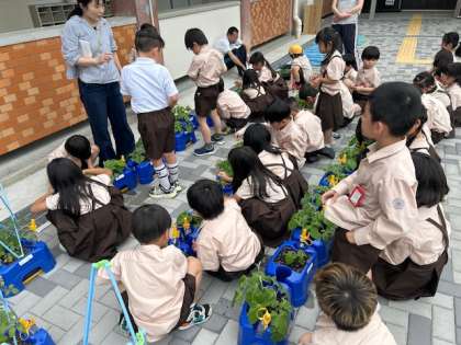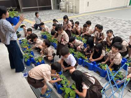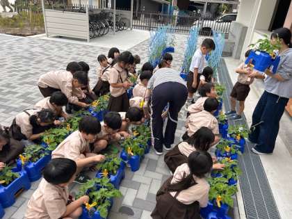 生活科「アサガオのかんさつ」では、大きく育つように「間引き」をしました。